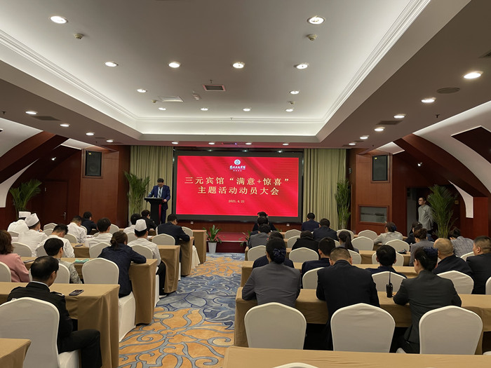 为提高全体员工的服务热情、服务质量、服务水平,同时增加服务中的“亮点”,提升宾馆内在动力,增强宾馆市场竞争力,提高宾客的满意度和社会的认可度。4月21日下午,酒管系(三元宾馆)全体员工在五楼报告厅召开2021年度“满意+惊喜”优质服务活动动员大会。