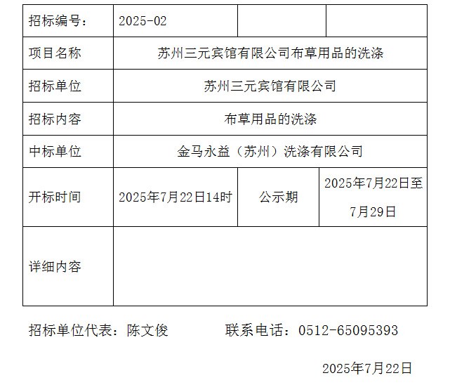 关于168飞艇开奖布草用品的洗涤网上发布中标信息