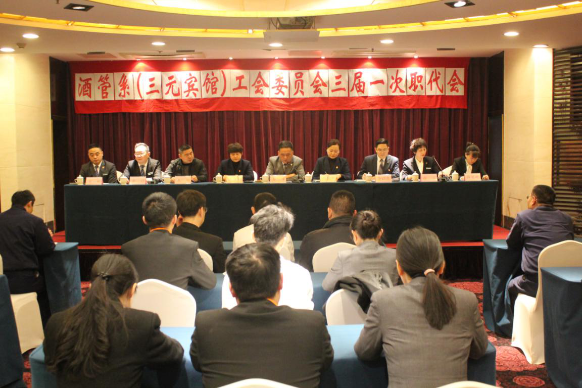 1月20日下午,酒店管理系(三元宾馆)工会委员会三届一次职工代表大会在宾馆多功能厅成功召开。大会由分工会组织委员张芸主持,33位职工代表参会,学院工会王刚委员出席会议。大会分第一次会议、分组讨论、第二次会议三个部分进行。大会由宾馆总经理俞险峰同志作《酒店管理系(三元宾馆)工作报告》,由分工会主席沈洁红同志作《分工会工作报告》,由酒店管理系(三元宾馆)党总支书记强佩华同志反馈《合理化建议》处理意见,并分组对两份报告进行深入的讨论。同时,大会现场选举产生酒店管理系(三元宾馆)三届职代会委员五名,表决通过《酒店管理系(三元宾馆)工作报告》和《分工会工作报告》,并形成决议。