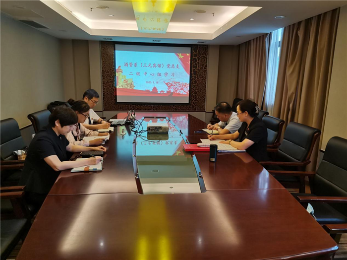 9月18日下午,酒店管理系(三元宾馆)党总支在宾馆三楼会议室召开二级中心组学习会议,学习“立德树人”专题内容。酒店管理系(三元宾馆)党总支全体委员参加了学习,学习由党总支书记强佩华主持。