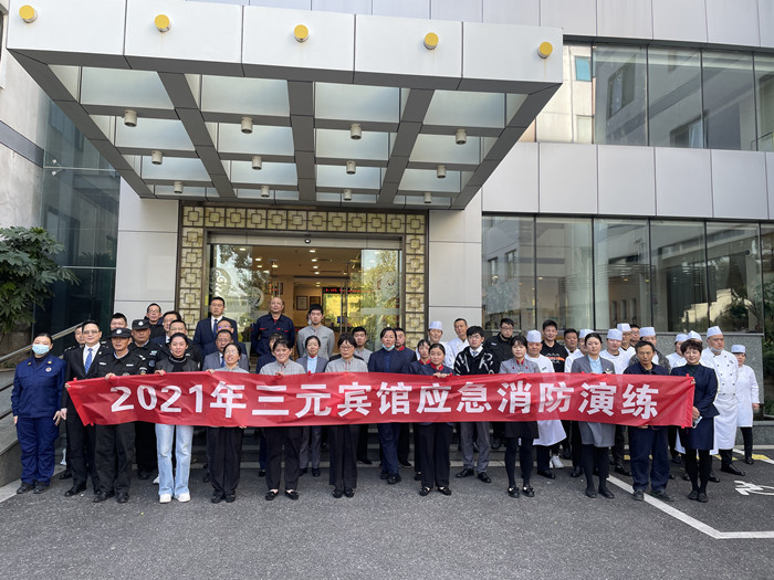 培训结束后进行了消防应急演练,当警报响起,广播中传来疏散的通知,员工们迅速有序地从安全通道撤离,在宾馆广场集中。随后员工们体验了灭火器的使用,面对熊熊燃烧的火,员工们表现十分沉着,熟练地用灭火器成功将火扑灭。